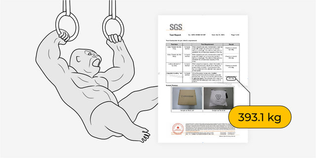Imagine a silverback gorilla swinging on your rings—and they don’t break. That’s the strength we’re talking about, with a max load of 400kg. It’s not just hype—our lab tests prove it. While others make claims, we back ours. So when you’re swinging, pulling, or dipping, know our rings are as solid as a silverback’s grip.